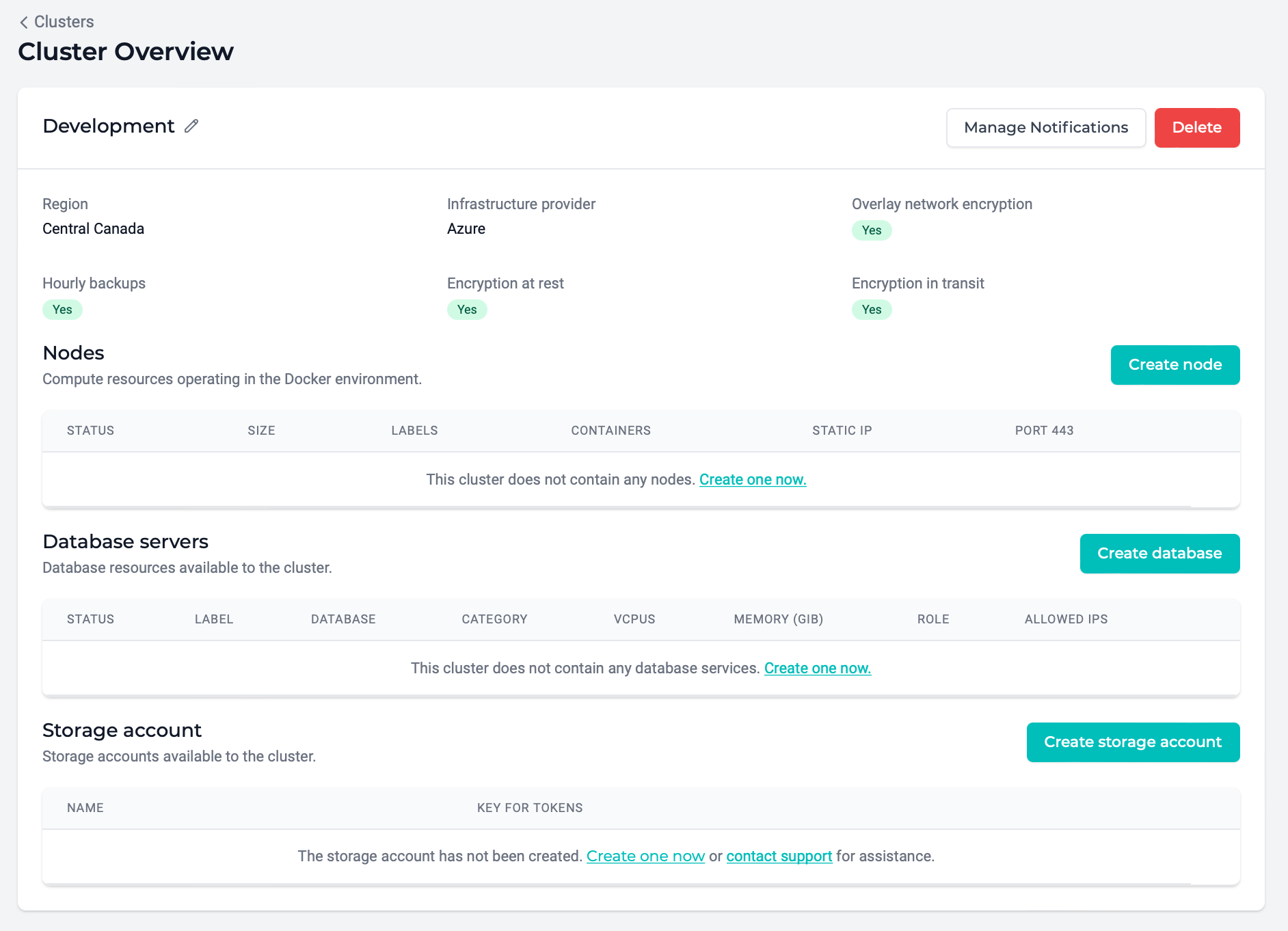 Once a cluster has been created, you'll soon be able to start creating resources in it.